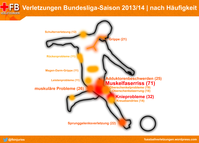 Der verletzte Spieler 2013/14 – oder ganz einfach zusammengefasst: Die häufigsten Bundesliga-Verletzungen der Saison auf einen Blick.