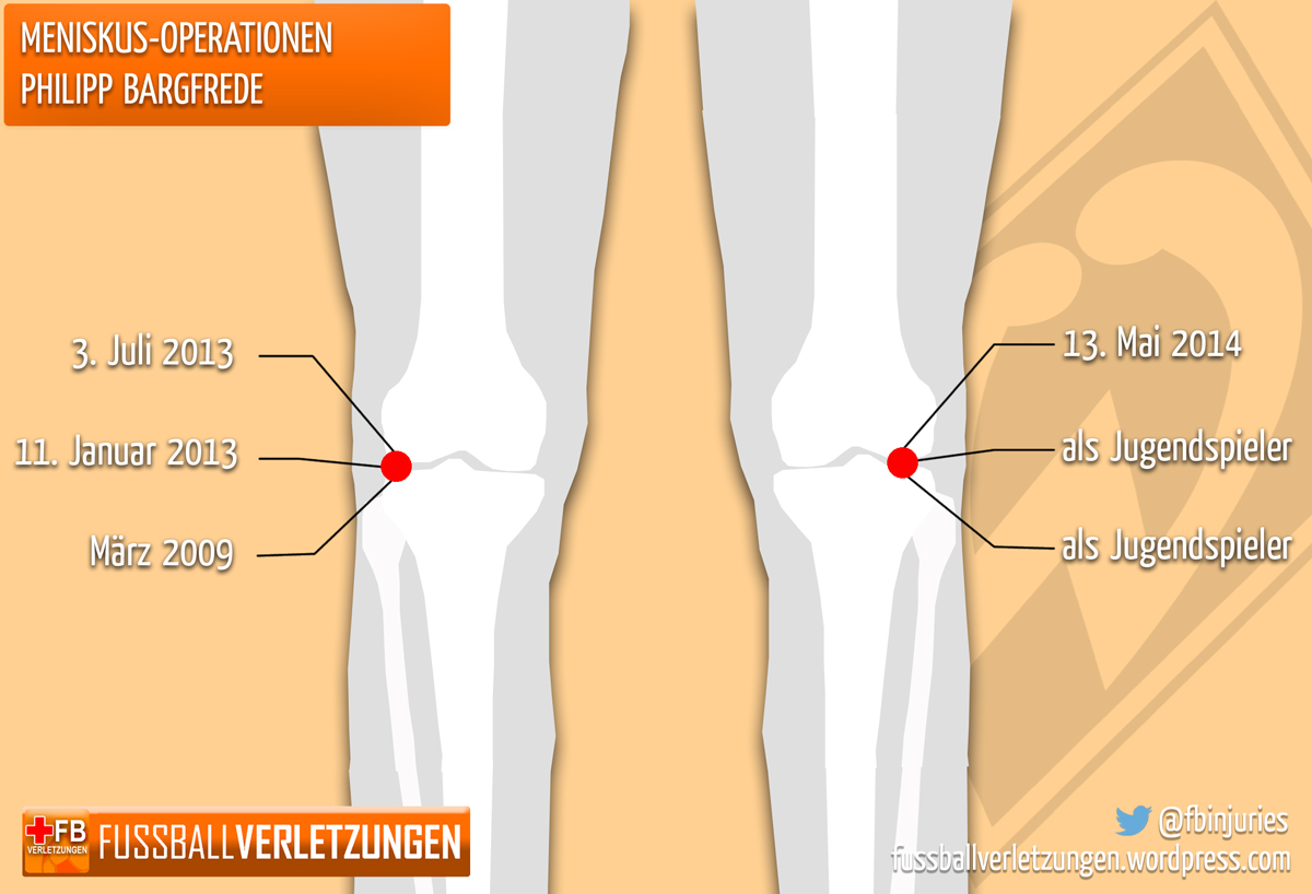 Philipp Bargfrede hat im Interview mit dem Kicker gesagt, dass er noch in diesem Jahr wieder auf dem Platz stehen will. Seit Monaten erholt er sich von einer Meniskus-Operation. Es war für den 25-Jährigen bereits die 6. Knie-OP – eine Übersicht: