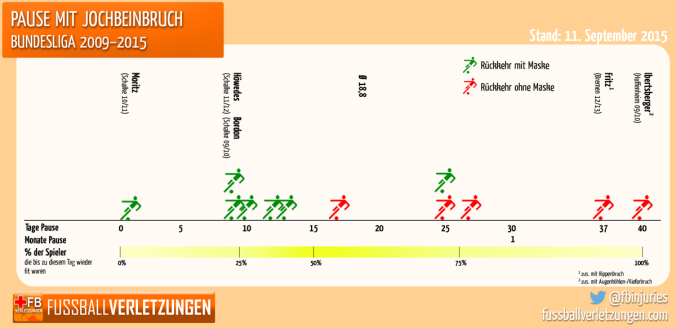 Für Gladbach kommt es ganz dicke: Nicht nur, dass die Fohlen am Freitag mit 0:3 gegen Hamburg verloren und damit den schlechtesten Bundesligastart ihre Geschichte abgeliefert haben, die Borussia musste auch den Ausfall Kapitän Martin Stranzl verkraften. Stranzl war ja gerade erst nach einer Verletzungspause zurückgekommen, prallte dann aber mit Mitspieler Havard Nordtveit zusammen und musste ausgewechselt werden – Verdacht auf Jochbeinbruch. Doch die Daten stimmen zumindest ein bisschen optimistisch: