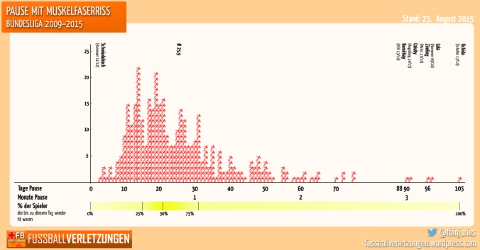 Gleich zwei Muskelfaserrisse im Oberschenkel sind die Bilanz des vergangenen Bundesliga-Wochenendes: Bayerns Medhi Benatia musste gegen Hoffenheim verletzt raus. Hamburgs Johan Djourou erzielte zwar den Siegtreffer gegen Stuttgart, verletzte sich aber offenbar auch – die Diagnose folgte dann heute. Doch wie lange werden beide fehlen? Die Daten: